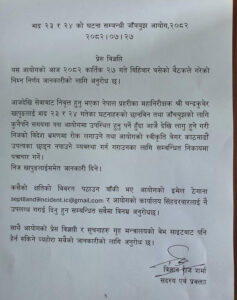 आयोगले पूर्वआईजीपी खापुङलाई त्यस निर्णयबारे जानकारी गराइसकेको बताएको छ। साथै, भदौ २३ र २४ को घटनामा कसैको क्षति विवरण पठाउन बाँकी भए उपलब्ध गराउन पनि भनेको छ ।