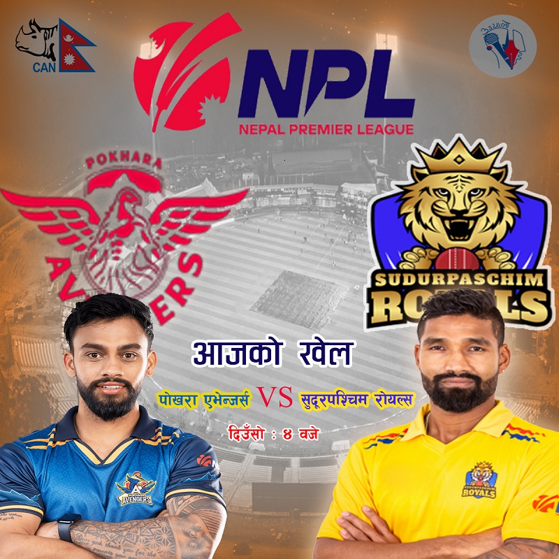 काठमाडौं । नेपाल प्रिमियर लिग (एनपीएल) मा आज सुदूरपश्चिम रोयल्स र पोखरा एभेन्जर्स खेल्दैछन् । खेल त्रिवि क्रिकेट मैदानमा बेलुकी ४ बजे हुनेछ ।