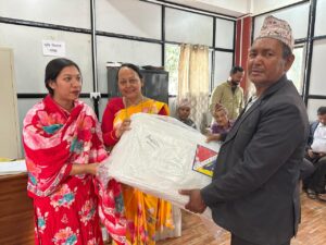 नगरप्रमुख पवित्रा महतारा प्रसाईले आज आइतबार आयोजित एक कार्यक्रमका बीच कृषकलाई विभिन्न प्रकारका कृषि सामग्री वितरण गर्नुभएको हो।