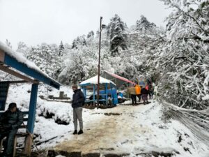 ताप्लेजुङ । ताप्लेजुङस्थित प्रसिद्ध पाथीभरा मन्दिर क्षेत्रमा आज हिमपात भएको छ। यो वर्ष पाथीभरा क्षेत्रमा ९औं पटक हिमपात भएको पाथीभरा क्षेत्र विकास समितिका कर्मचारी राजेन्द्र महतले जानकारी दिएका हुन् ।
