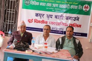 संस्था अन्तरगत शिक्षा तथा तालिम उपसमितिद्वारा आज गोलधाप र विर्ताबजार सेवाकेन्द्रका महिला शेयर सदस्यहरुका लागि २ दिवसीय कपुर धुप बाती बनाउने सिपमुलक तालिम संचालन गरेको हो ।