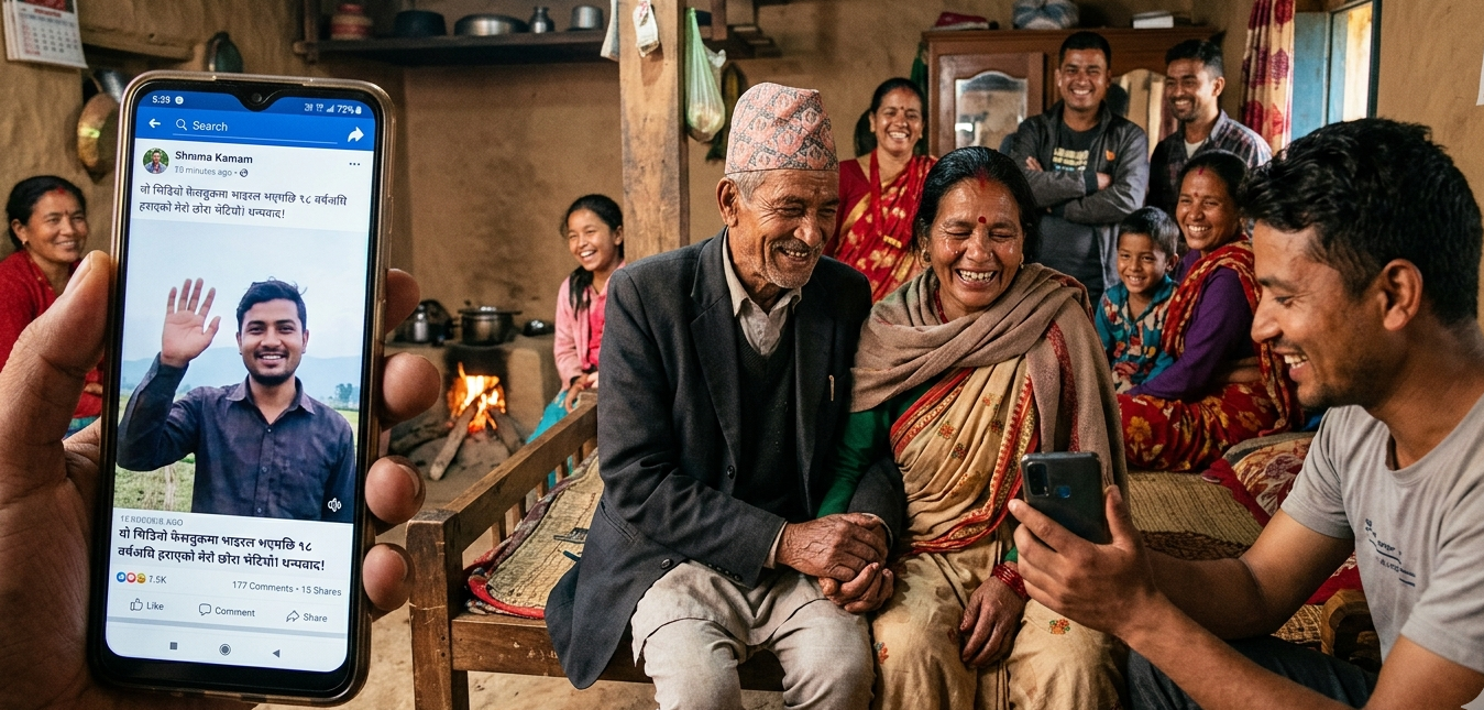 काठमाडौं । सामाजिक सञ्जाल फेसबुकमा अपलोड गरिएको एउटा भिडियोले १८ वर्षदेखि हराएको छोराको खबर ल्याएपछि कञ्चनपुरको शुक्लाफाँटा नगरपालिका–१२ का डम्बरबहादुर नेगीको परिवारमा खुसीयाली छाएको छ । लामो समयदेखि सम्पर्कविहीन रहेका छोरा दीपक जीवित रहेको खबर पाएपछि परिवार पुनर्मिलनको प्रतीक्षामा छ ।